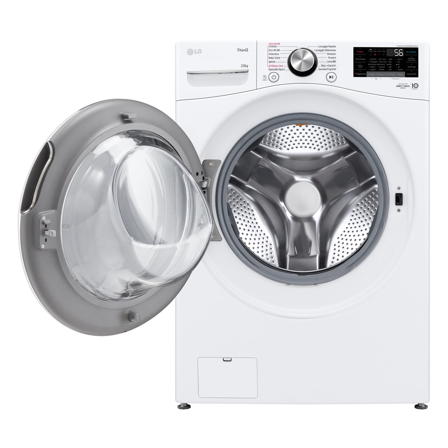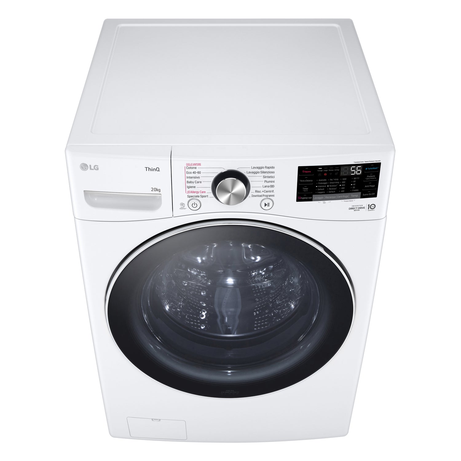 LG F0P3020TSWC Lavatrice capacità XL 20kg AI DD™ Serie P3, Classe B, 1000 giri, TurboWash 360, Vapore, Wi-Fi, White, Caricamento frontale, 20 kg, B, 74 dB, 1000 Giri/min, B